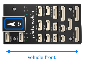 Motors/servos are connected to the I/O PWM OUT (MAIN) and FMU PWM OUT (AUX) ports in the order specified for your vehicle in the Airframe Reference.