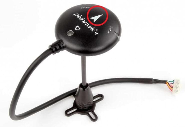 8. Use the tape and stick the GPS to the top of the GPS mast and mount the GPS mast. Make sure the arrow on the gps is pointing forward (Figure 15).