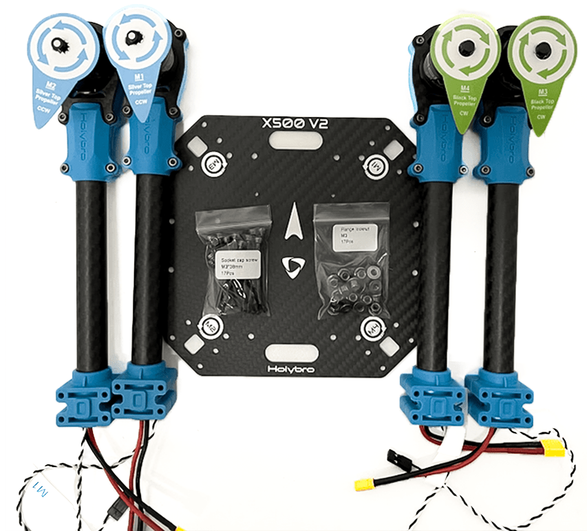 Additionally you will need a battery (Holybro recommends a 4S 5000mAh) and receiver (compatible radio system) if you want to control the drone manually.