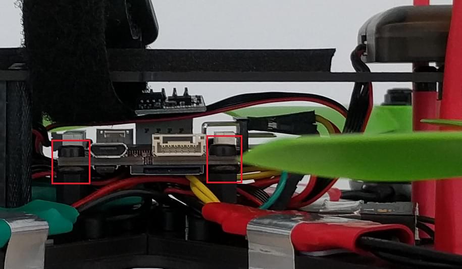 I mounted the Pixracer using the nylon spacers and screws that get shipped with the QAV-R frame but put some small O-rings between the board and the spacers to add a bit of vibration dampening. Make sure to not tighten the screws too much or little, do it such that the board clearly touches both sides but is not clamped with any tension. The board should not dangle in any way but be slightly movable if you apply force to it with your fingers.